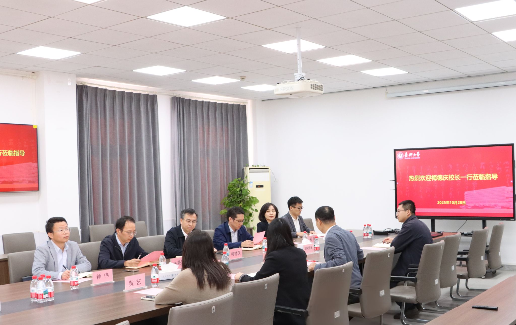 1028日下午,梅德庆校长一行到澳门六合彩 调研指导工作,学校相关职能部门负责人和澳门六合彩 领导班子成员参加调研座谈。