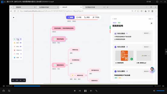 柏老师紧紧围绕课程内容的完成情况与优化方向向大家展开介绍。她首先通过智慧树官网登录课程教师端,展示了课程的基本概况与体系结构;随后依次讲解了课程设计、知识图谱、能力图谱及课程教学资源等模块。在知识图谱方面,大家对知识点的层级、框架及内容进行了审核,并完成了资源挂载。在能力图谱方面,将能力划分为知识、技能与素养三个维度,并建立相互关联。在课程教学资源方面,介绍了题库、知识点清单及教学资源统计等功能。最后,与会教师共同讨论了知识点关系的确定方法以及出题模板的使用规范。